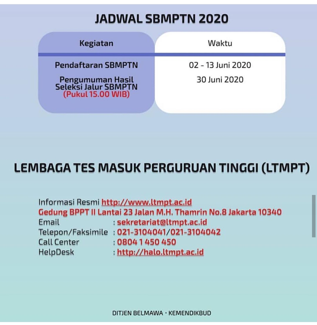Tahapan Pendaftaran Jalur SNMPTN dan Jalur UTBK-SBMPTN 2020