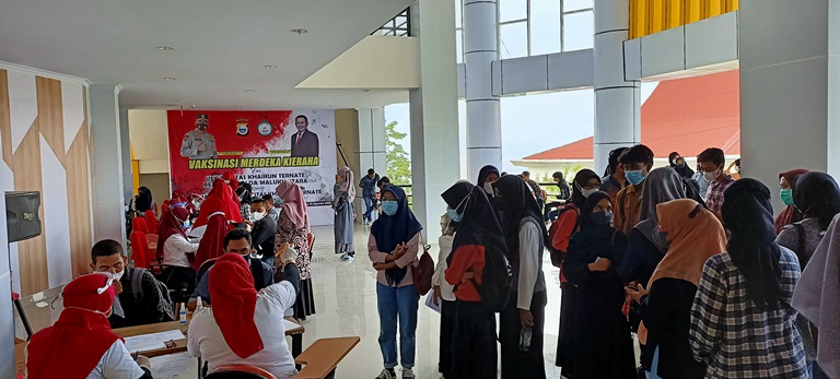 Polda Malut dan Unkhair Gelar Sosialisasi dan Vaksinasi Untuk Mahasiswa