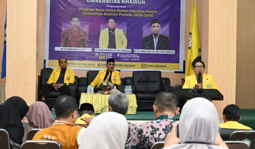 UNKHAIR, Tiga calon Dekan Fakultas Teknik Universitas Khairun (Fatek-Unkhair) paparkan visi, misi, dan program kerja periode 2026–2030, di Aula Agus B. Pranata Fatek Unkhair, pada…