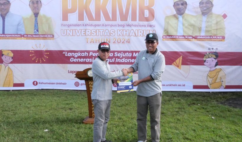 UNKHAIR—Wakil Rektor I Bidang Akademik, Dr. Hasan Hamid, M.Si melaksanakan serah terima mahasiawa baru (Maba) sebagai rangkaian pelaksanaan Pengenalan Kehidupan Kampus Bagi Mahasiswa Baru (PKKMB)…