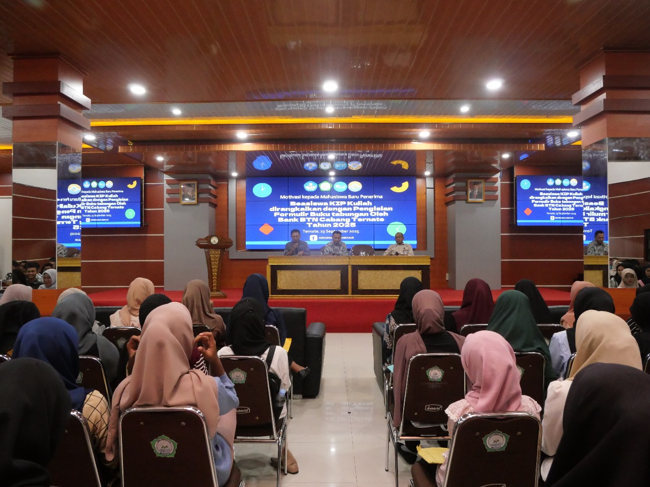Pesan itu disampaikan pada motivasi dan proses pengisian formulir buku tabungan Bank Tabungan Negara (BTN) di Lt. IV Aula Nuku, Gedung Rektorat Unkhair, Kampus II Ternate, Selasa (23/9/2025).