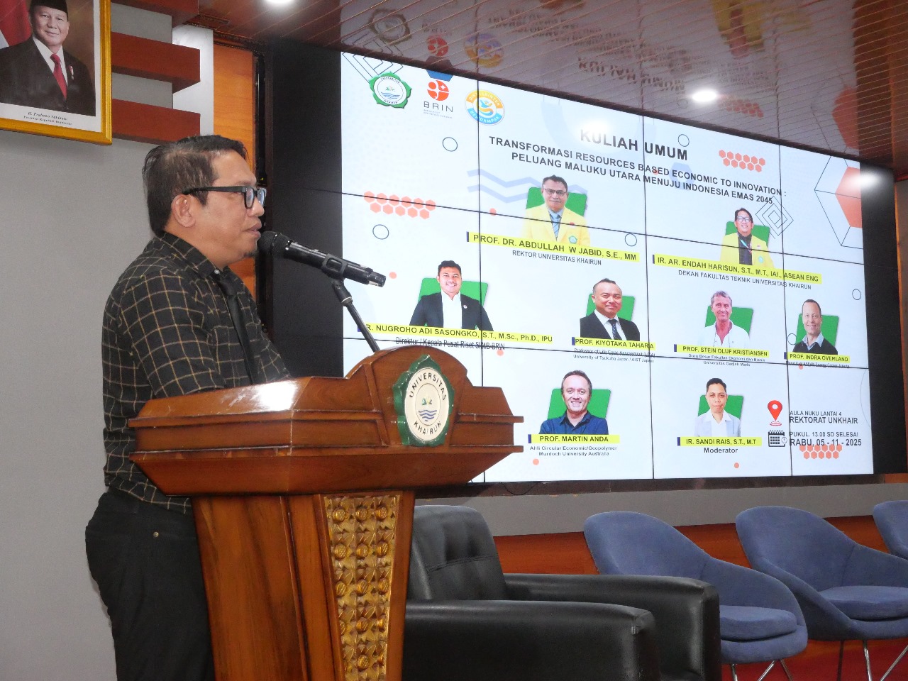 Pernyataan itu disampaikan Endah saat membuka kuliah umum bertajuk, “Transformasi Resources Based Economy to Innovation: Peluang Maluku Utara Menuju Indonesia Emas 2045” di aula Nuku, gedung Rektorat Unkhair, Rabu (5/11/2025).