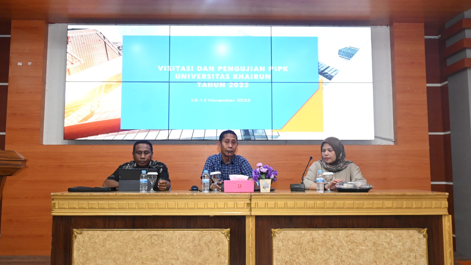 UNKHAIR, Universitas Khairun (Unkhair) Ternate tengah menjalani proses visitasi dan pengujian Pengendalian Intern atas Pelaporan Keuangan (PIPK) tahun 2025. Kegiatan ini berlangsung selama tiga hari, 10–12 November 2025, di Aula Babullah, Gedung Rektorat Kampus II Unkhair.