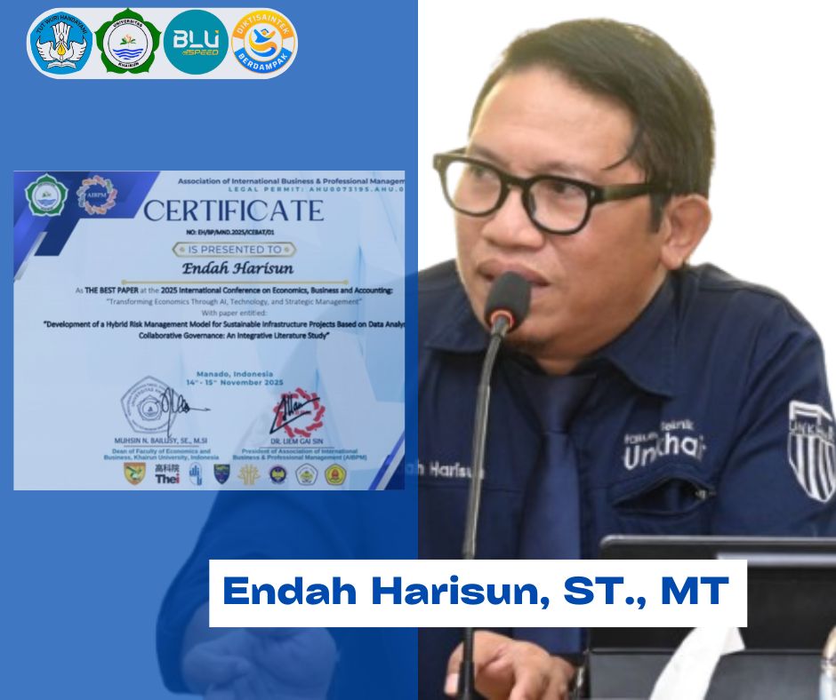 Endah juga tercatat sebagai mahasiswa S3 Unkhair, menyandang penghargaan tertinggi melalui paper berjudul; “Development of a Hybrid Risk Management Model for Sustainable Infrastructure Projects Based on Data Analysis and Collaborative Governance: An Integrative Literature Study.โ