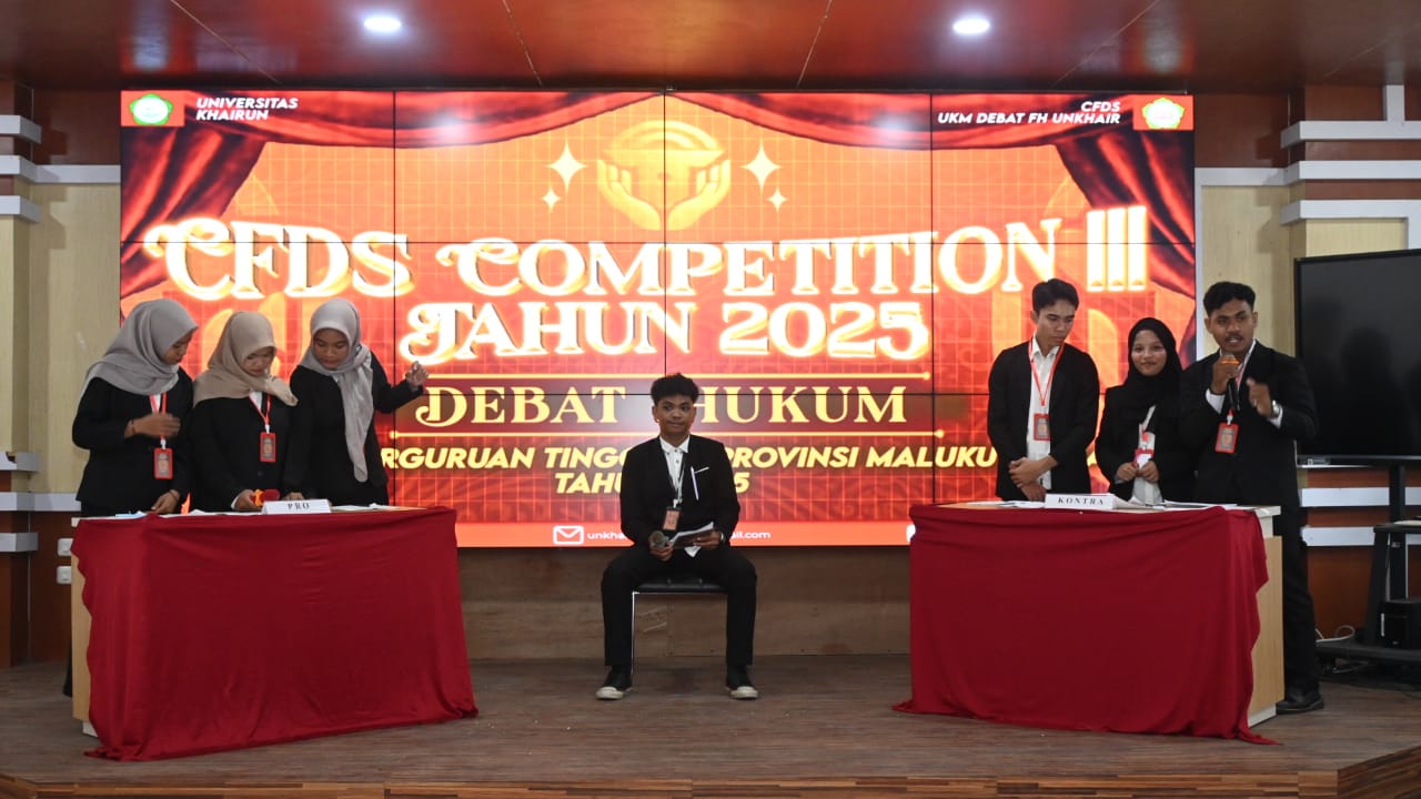 UNKHAIR, Peringati Dies Natalis ke-10, Unit Kegiatan Mahasiswa (UKM) Debat Fakultas Hukum Universitas Khairun (FH-Unkhair), resmi membuka Center for Constitution and Debate Studies (CFDS) Competition ke-III 2025, ajang debat hukum antar perguruan tinggi se-Maluku Utara.