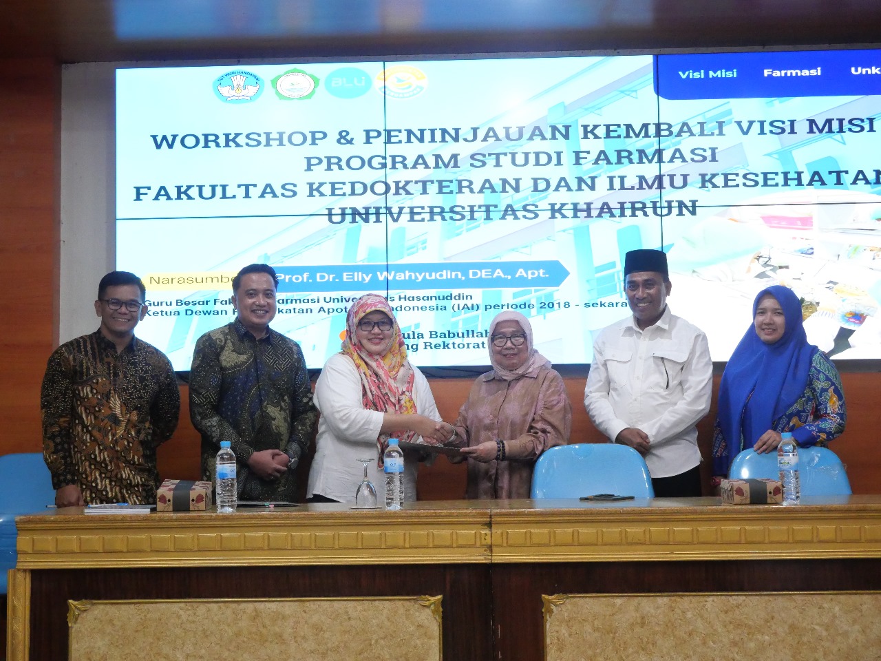 Workshop ini dibuka secara resmi oleh Wakil Rektor I Bidang Akademik Unkhair, Dr. Hasan Hamid, M.Si, mewakili Rektor Unkhair. Workshop menghadirkan Guru Besar Fakultas Farmasi Universitas Hasanuddin (Unhas), Makassar, Prof. Dr. Elly Wahyudin, DEA, Apt.