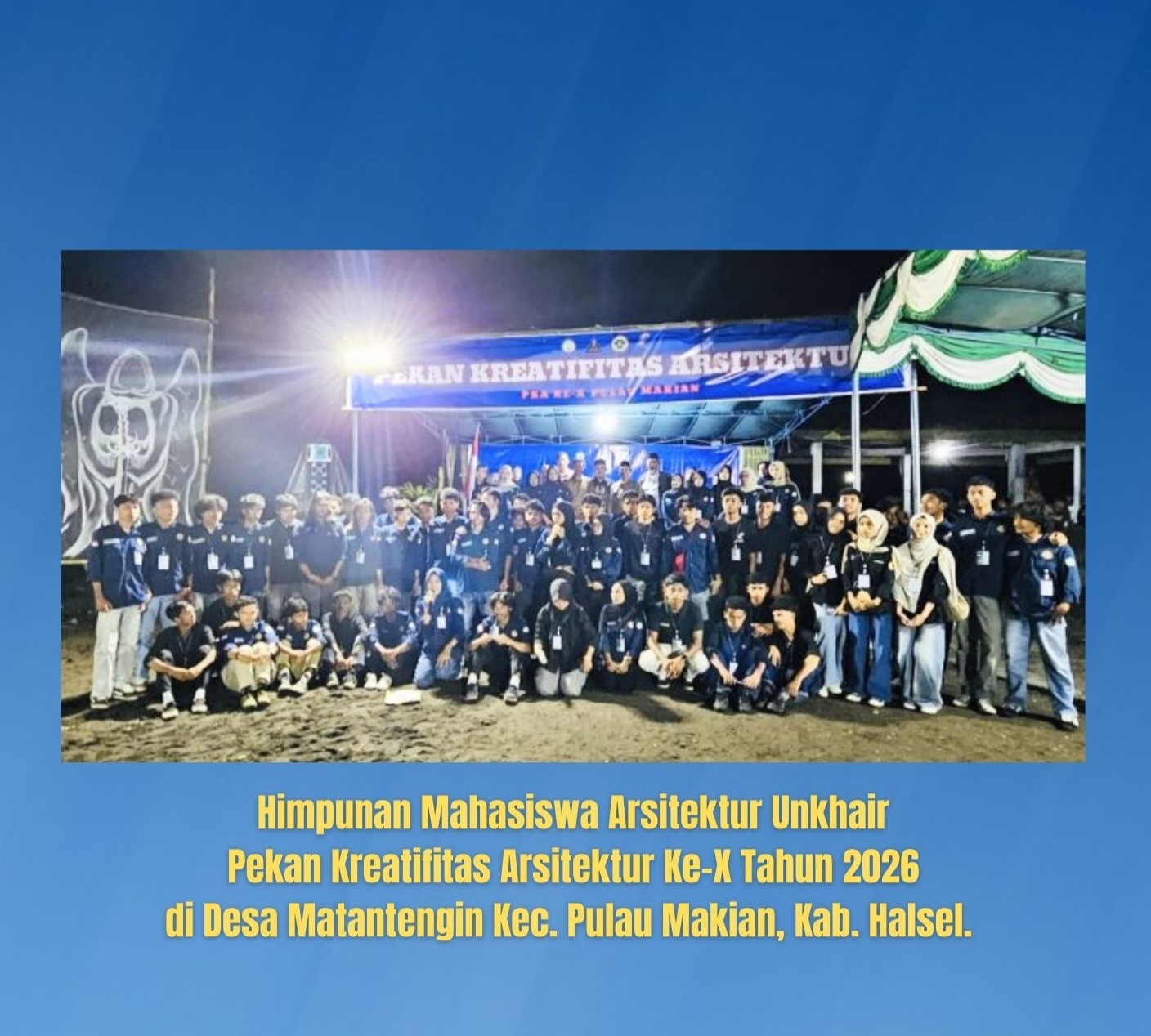 UNKHAIR, Himpunan Mahasiswa Arsitektur (HIMA) Fakultas Teknik Universitas Khairun (Unkhair) Ternate mengadakan Pekan Kreativitas Arsitektur (PKA) Ke-X di Desa Matantengin, Kecamatan Pulau Makian, Kabupaten Halmahera Selatan.