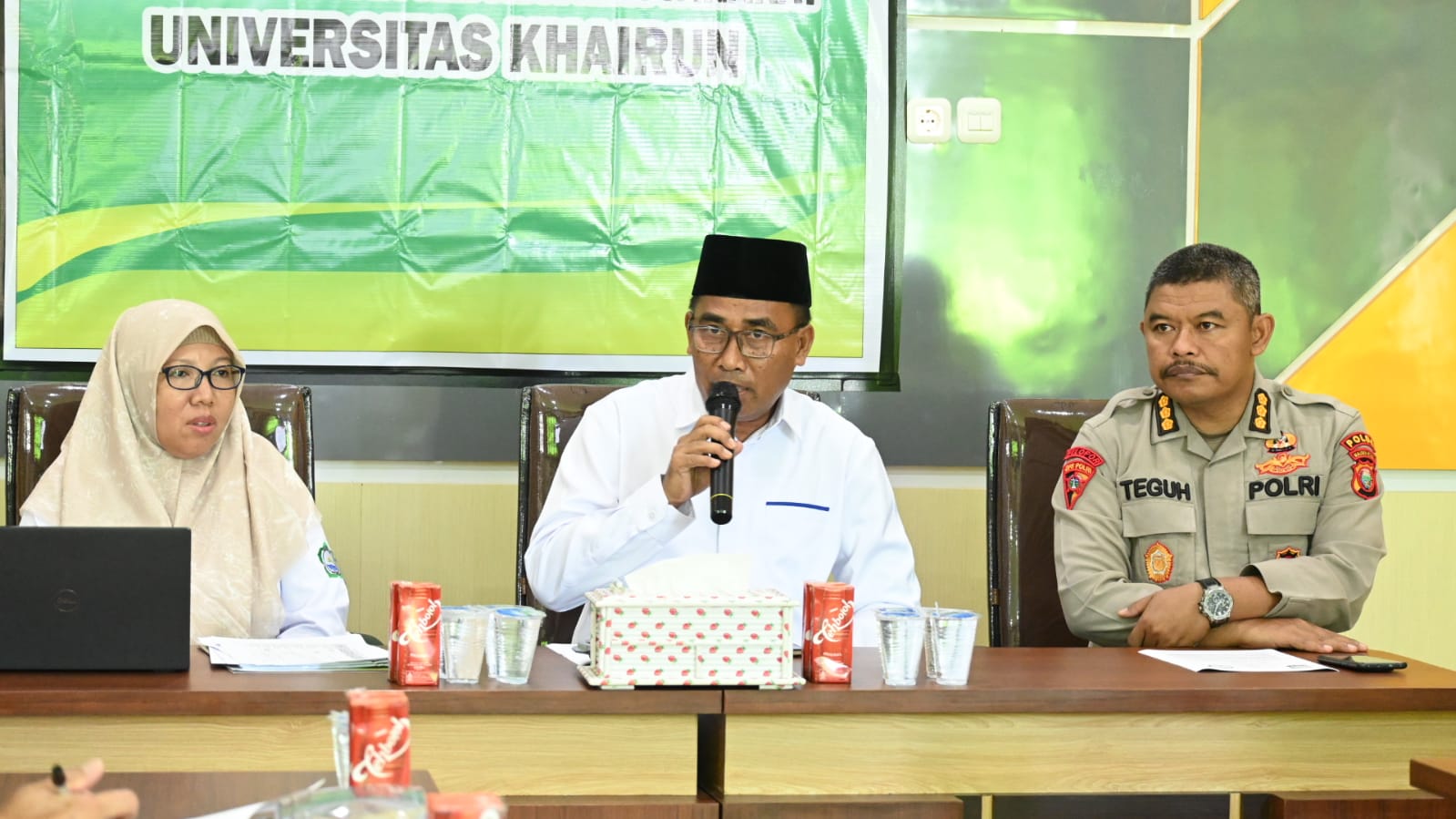 Wakil Rektor I Bidang Akademik Unkhair, Dr. Hasan Hamid, M.Si, dalam sambutannya, mengatakan pertemuan ini sebagai langkah awal penyusunan kerangka kerja sama antara Unkhair dan kepolisian.