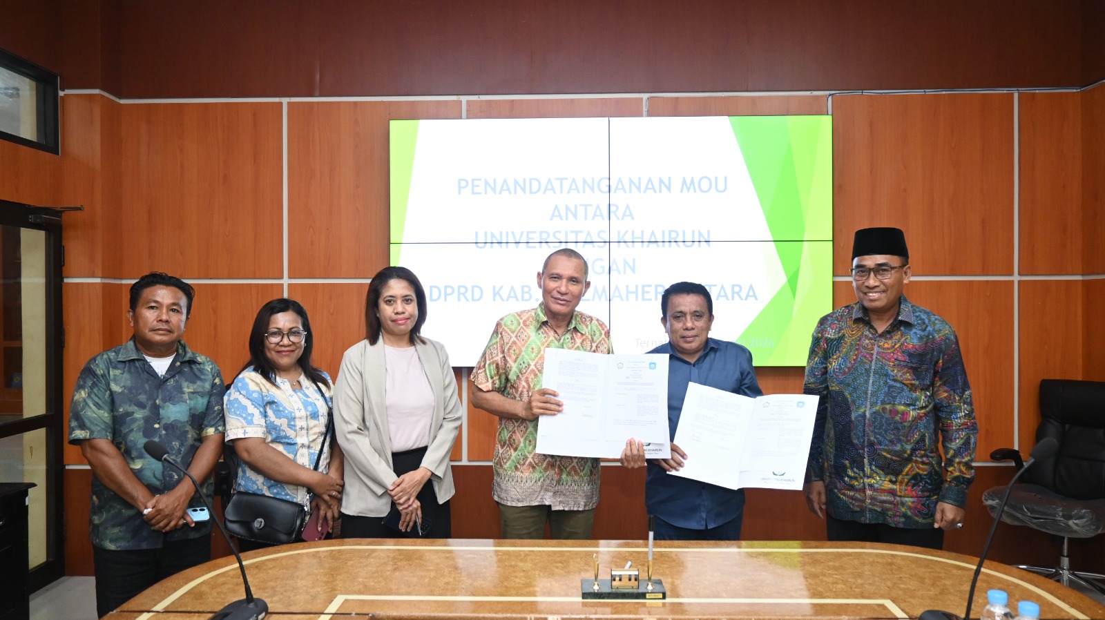 UNKHAIR, Universitas Khairun menjalin kerja sama strategis dengan Dewan Peewakilan Rakyat Daerah Kabupaten Halmahera Utara (DPRD-Halut) melalui penandatanganan Nota Kesepakatan Bersama (MoU), di Ruang Senat Lantai 3 Gedung Rektorat, Kampus II Unkhair, Ternate, Jumat (13/2/2026),