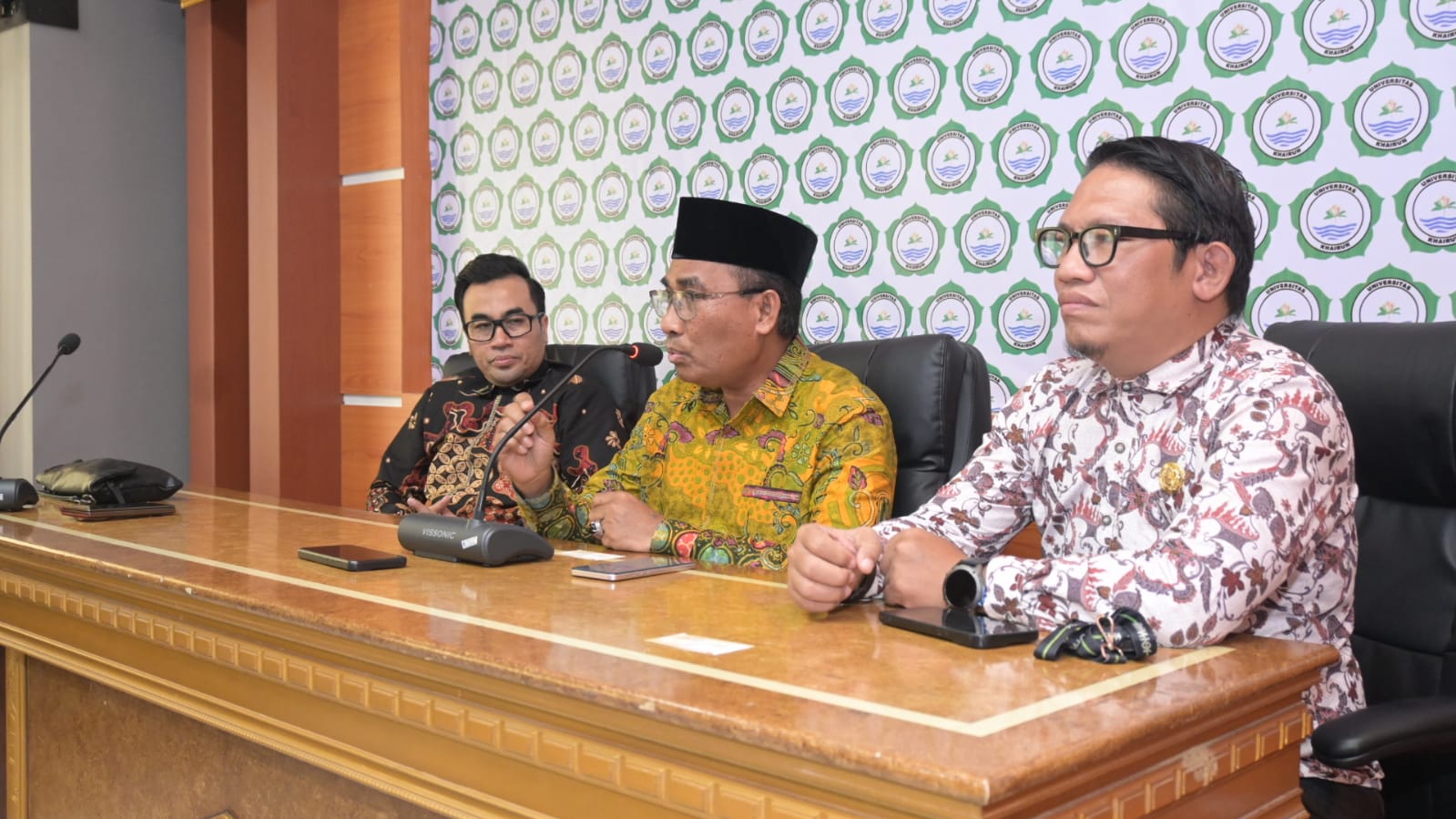 UNKHAIR, Wakil Rektor I Bidang Akademik, Dr. Hasan Hamid, M. Si, bersama Dekan Fakultas Teknik Ir. Ar. Endah Harisun, S.T., M.T., CRP., IPM., IPU., ASEAN Eng, menerima kunjungan Perhimpunan Ahli Pertambangan Indonesia (PERHAPI), di Ruang Senat Universitas, Gedung Rektorat Kampus II Unkhair, Ternate, Jumat (24/4/2026).