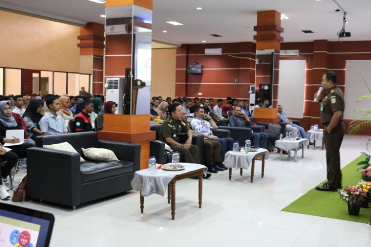 Kepala Seksi Penerangan Umum Kejaksaan Tinggi Maluku Utara Apris Risman Ligua,SH dalam sambutannya menyampaikan permohonan maaf atas ketidakhadiran kepala Kejaksaan Tinggi Maluku Utara karena beliau sedang bertugas di luar daerah, lanjut beliau kegiatan ini kami laksanakan di semua provinsi di Indonesia, untuk wilayah Maluku Utara Kampus yang pertama dikunjungi adalah Universitas Khairun, kegiatan ini bertujuan untuk memberikan pemahaman dan lebih mengenalkan kepada mahasiswa atas tugas dan fungsi Jaksa, bagaimana tugas tugasnya dan wewenang yang diemban oleh seorang Jaksa, diharapkan kegiatan ini dapat memberikan ilmu yang bermanfaat bagi para mahasiswa.
