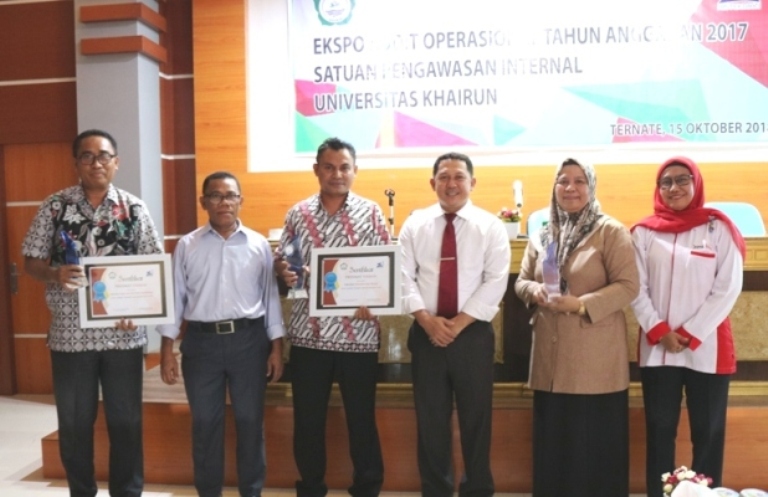 Unkhair.ac.id. Satuan Pengawas Internal Universitas Khairun melakukan kegiatan Ekspo Audit Operasional Tahun Anggaran 2017, kegiatan ini berlangsung di Aula Babullah lantai 4 gedung Rektorat Universitas Khairun (Senin, 15 Oktober 2018). Hadir dalam kesempatan ini Rektor Universitas Khairun Prof.Dr. Husen Alting,SH.MH, Wakil Rektor II bidang administrasi umum dan keuangan Dr. Abd Wahab Hasyim,SE.M.Si, Para Dekan lingkup Unkhair, para wakil Dekan II lingkup Unkhair, para Kepala Biro, para Kabag dan Kasubag lingkup Unkhair dan para pengelolah keuangan lingkup Unkhair dan Ketua serta Sekertaris SPI beserta stafnya.