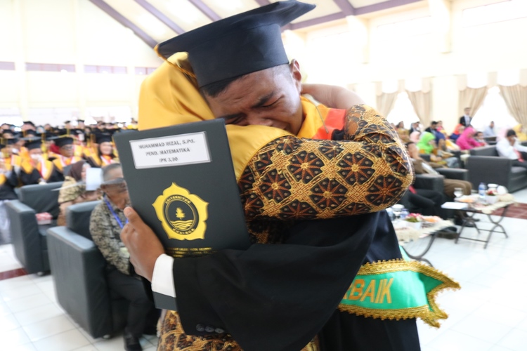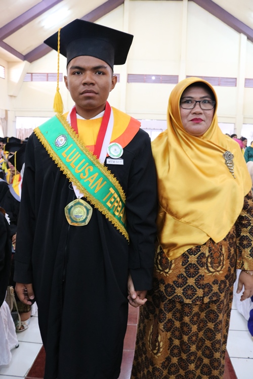 Unkhair.ac.id. Menjadi sarjana adalah harapan dari orang tua untuk mengangkat derat keluarga dari segi Pendidikan, hal ini membuat Muhammad Rizal harus berjuang keras, alhasilnya ia tercatat sebagai Wisudawan Termuda dalam wisuda gelombang I Tahun Akademik 2018/2019. Muhammad Rizal Mahasiswa Fakultas Keguruan dan Ilmu Pendidikan Program Studi Pendidikan Matematika sukses meraih gelar sarjana di usia 19 Tahun 2 Bulan 14 hari. Selain tercatat sebagai wisudawan termudah Ical panggilan akrabnya tercatat juga sebagai wisudawan terbaik dengan predikat pujian. Bersama 739 Wisudawan Ical telah resmi sebagai sarjana saat acara wisudah di Aula Banau Kampus I Universitas Khairun Jalan Bandara Babullah Ternate.(Sabtu, 30 Maret 2019).