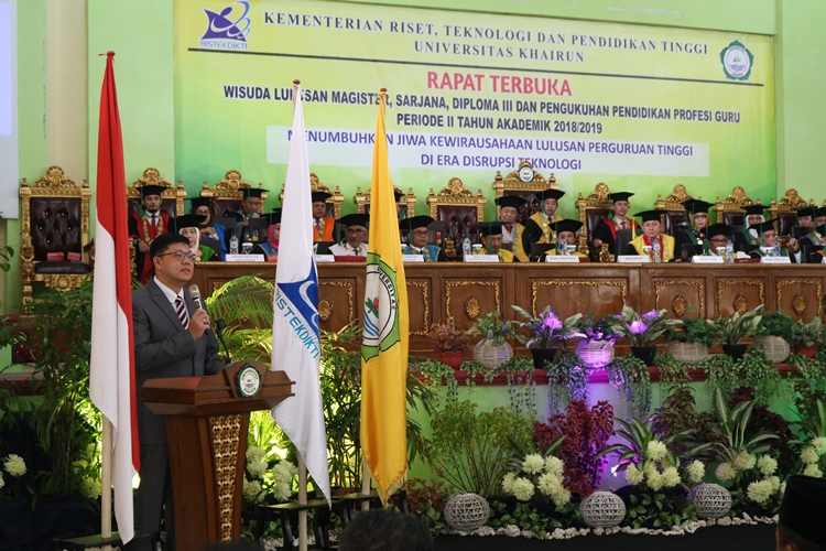 Pada acara wisuda kali ini Rektor Universitas President Prof. Jony Oktavian Haryanto, SE.MM.MA diberikan kesempatan untuk menyampaikan orasi ilmiah dihadapan civitas akademika Universitas Khairun dengan judul Menumbuhkan Jiwa Kewirausahaan Lulusan Perguruan Tinggi Di Era Disrupsi Teknologi, untuk menjadi seorang wirausahaan sukses bukan ditentukan oleh keluarga tapi tekad dan keinginan yang bersangkutan, tidak ada satupun survei yang mengatakan bahwa Indeks prestasi yang tinggi membawa kesuksesan seseorang apalagi indeks prestasinya rendah. Universitas juga dituntut tidak hanya mengajarkan teori tapi juga mengasah kemampuan mahasiswa untuk berwirausaha.