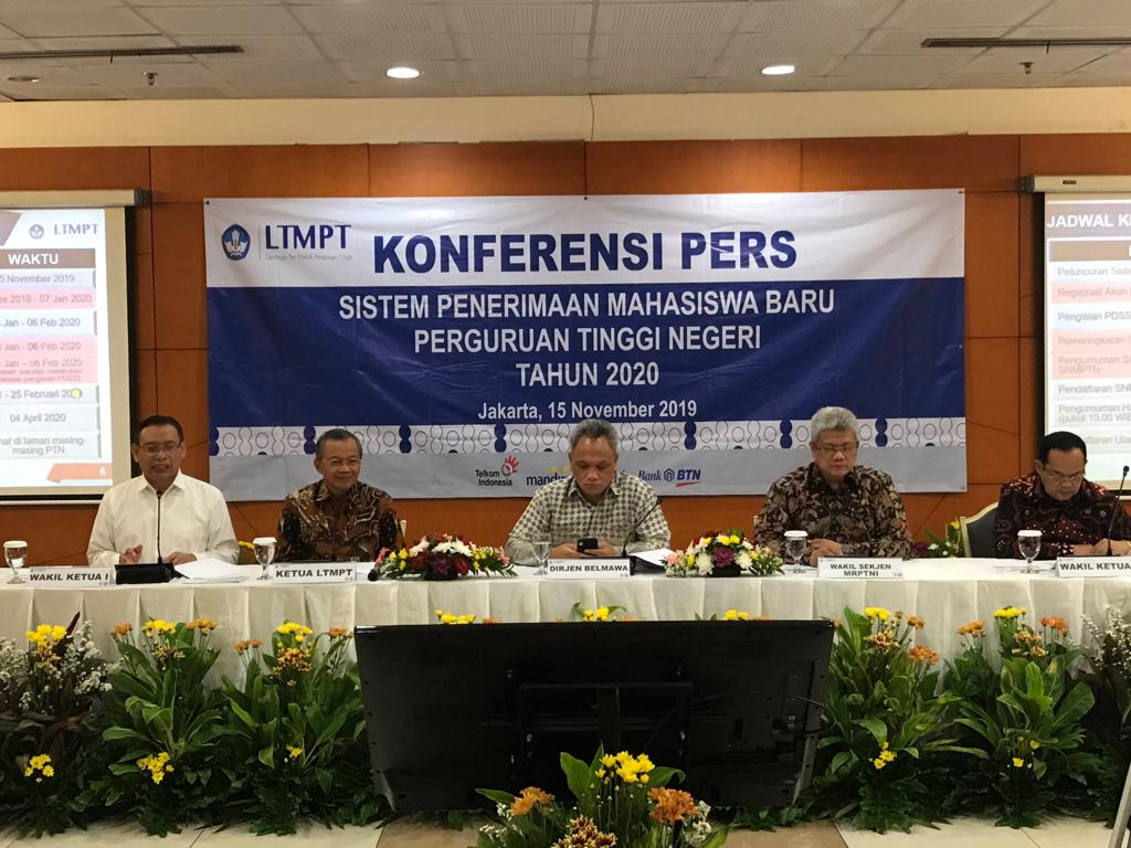 Unkhair.ac.id. Jakarta LTMPT 2019. Kementerian Pendidikan dan Kebudayaan (Kemdikbud) pada hari Jum’at, 15 November 2019 bertempat di ruang Sidang Utama Gedung D Kemdikbud meluncurkan secara resmi Sistem Penerimaan Mahasiswa Baru PTN Tahun 2020. Peluncuran dilakukan oleh Direktur Jenderal Pembelajaran dan Kemahasiswaan (Dirjen Belmawa) Prof. Dr. Ismunandar yang mewakili Menteri Pendidikan dan Kebudayaan. Ikut serta mendampingi Dirjen Belmawa tersebut, Prof. Dr. Ravik Karsidi, MS. (Ketua LTMPT), Prof. DR. Mohammad Nasih, MT., SE., Ak., CMA. (Wakil Ketua I) Prof. Dr. Sutrisna Wibawa, MPd. (Wakil Ketua II), serta Prof. Dr. Syafsir Akhlus, M.Sc. (Pengurus MRPTNI).