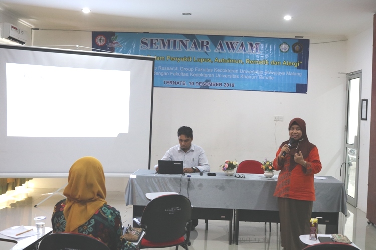 Dekan Fakultas Kedokteran Universitas Khairun dr. Marhaeni Hasan,S.pA.M.M dalam sambutannya mengatakan kefiatan ini kegiatan ini diharapkan dapat merintis kerjasama antara Fakultas Kedokteran Universitas Brawijaya dengan Fakultas Kedokteran Universitas Kahirun. Sehingga ke depannya dapat dilakukan kerjasama-kerjasama lainnya baik dalam bidang pendidikan, penelitian dan pengabdian masyarakat. Kegiatan ini juga dapat meningkatkan kemampuan dan keterampilam dosen, peneliti, ataupun mahasiswa dari Fakultas Kedokteran Universitas Kahirun. Seminar ini juga melibatkan tenaga medis RSUD dan masyarakat umumnya sehingga dapat meningkatkan pengetahuan dan informasi bagi tenaga medis serta masyarakat khususnya di Kota Ternate, Maluku Utara terkait penyakit Lupus, Autoimun, Rematik dan Alergi.