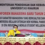 Rektor Universitas Khairun Prof. Dr. Husen Alting,SH.MH dalam sambutannya mengucapkan selamat datang dan selamat bergabung dengan sivitas akademika Universitas Khairun, Beliau berpesan agar mahasiswa baru dapat beradaptasi dengan lingkungan dan kehidupan kampus yang saat ini masih menjalankan protocol kesehatan pencegahan COVID-19. Banyak mahasiswa yang akan menuntut ilmu di Universitas Khairun, berperilakulah yang baik, santun serta menjadi mahasiswa yang berkarakter yang berahlak mulia dimata masyarakat.