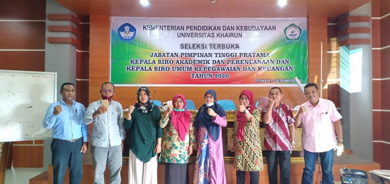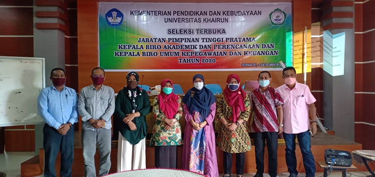 Unkhair.ac.id. Universitas Khairun mengadakan seleksi terbuka Jabatan Tinggi Pratama (JPT) untuk mengisi jabatan Kepala Biro Akademik Kemahasiswaan, Perencanaan dan Kerjasama serta jabatan Kepala Biro Umum Kepegawaian dan Keuangan. Seleksi JPT ini adalah seleksi yang pertama kali dilaksanakan oleh Universitas Khairun.