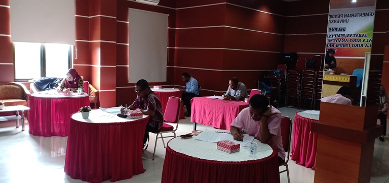 Ketua Panitia Seleksi JPT. Prof. Dr. Wahab Hasyim, SE.M.Si ketika diwawancarai oleh tim humas menjelaskan kami telah mengumumkan secara terbuka terkait lelang jabatan ini, panitia juga telah mengirimkan undangan beserta persyaratan kepada seluruh kampus, namun sampai saat tanggal penutupan, panitia hanya menerima 7 orang yang mendaftar, selanjutnya mereka dinyatakan lulus adminstrasi oleh panitia. Prof. Dr Wahab Hasyim. SE.M.Si menyebutkan, ke tujuh peserta yang ikut seleksi terbuka JPT adalah Nurdewi Rizka, SP. M.Pd. Tuti Abdurahman, S.Pd. Nurilmi Lina, SH. Muhammad Tahir Abdulkadir, SH.. Ansar Ahmad, S.Sos. M.Si. Bahdir Kader, SE dan Mursid Ishak. S.Pd