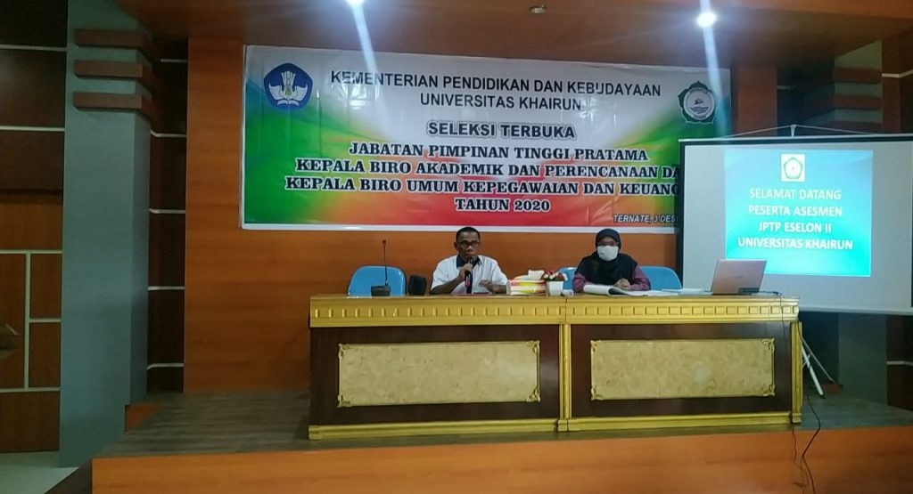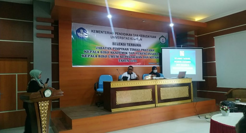 Proses pelaksanaan seleksi berlangsung di aula Babullah gedung Rektorat Universitas Khairun (Kamis, 3 Desember 2020). Sesuai ketentuan yang berlaku terhadap pengisian jabatan tinggi pada instansi pemerintah, sebelumnya panitia pelaksana seleksi telah mengumumkan secara resmi dilaman resmi milik Universitas Khairun yakni kepegawaian.unkhair.ac.id.