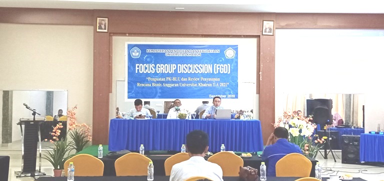 Tahun 2021 adalah tahun pertama Universitas Khairun melaksanakan semua pengelolaan keuangan dengan sistem Badan Layanan Umum. Untuk lebih memahami bagaimana mekanisme tata kelolah keuangan BLU serta bagaimana penyusunan Rencana Bisnis Anggaran (RBA) maka hari ini Rabu, 16 Desember 2020 Unkhair melalui bagian perencanaan menggelar kegiatan Focus Group Discussion (FGD) dengan tema “Penguatan PK-BLU dan Riview Penyusunan Rencana Bisnis Anggran Universitas Khairun TA. 2021”.
