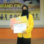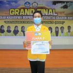 Setelah membaca panjang lebar surat keputusan dan berbagai pertimbangan lainnya panitia akhirnya memutuskan Dinda Rahmawati mahasiswi Fakultas Teknik program studi Teknik Informatika dengan IPK 3,93 sebagai peraih Juara 1 Pemilihan Mahasiswa Berprestasi Tingkat Universitas Khairun tahun 2020. Dinda panggilan akrabnya membawakan makala dengan judul Perancangan Sistem Informasi Penjualan Batik Malefo Khas Ternate Berbasis Website (SIPETIK MALEFO). Dalam gagasan kreatifnya, Dinda ingin mengenalkan usaha Batik Malefo khas Ternate dengan system digital melalui peluang usaha UMKM Go Online. Pada rancangan ini Dinda menggunakan perangkat lunak system informasi penjualan secara online. Seperti e-commerce yang lain, Dinda merancang sedetail mungkin dan juga memunculkan ciri khas batik Malefo dengan gaya milenial.