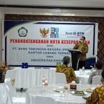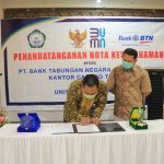 Kepala cabang bank BTN Hendri Indra P. Gunawan dalam sambutan mengatakan terima kasih telah bekerjasama dengan bank BTN, kerjasama antara pihak BTN dengan Unkhair telah berjalan beberapa tahun kemarin, Unkhair telah menggunakan fasilitas bank BTN dalam penyaluran beasiswa. Bank BTN siap membantu Universitas Khairun untuk mengakses fasilitas jasa keuangan yang dimiliki oleh bank BTN. Setelah menyampaikan sambutan, Rektor bersama Kepala Cabang Bank BTN melakukan penandatanganan nota kerjsama kedua belah pihak yang disaksikan oleh pejabatan masing masing. (Humas)