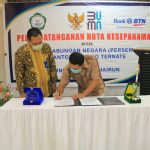 Unkhair.ac.id. Universitas Khairun kembali menjalin kerjasama dengan PT. Bank Tabungan Negara Kantor Cabang Ternate. Penandatangan nota kerjasama berlangsung di Royal Resto Ternate (29 Desember 2020). Hadir dalam kesempatan itu Rektor Prof. Dr. Husen Alting, SH.MH beserta para Wakil Rektor dan para Dekan lingkup Universitas Khairun. Dari pihak Bank Tabungan Negara hadir kepala cabang PT.BTN Tenate Hendri Indra P. Gunawan beserta Wakil Kepala Cabang dan jajaran di lingkup PT.BTN Cabang Terrnate.