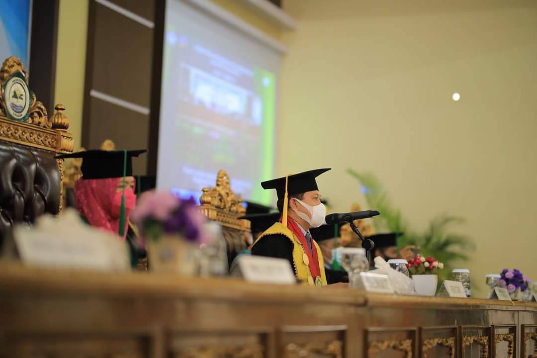 Diakhir sambutannya Rektor Universitas Khairun Prof. Dr. Husen Alting, SH.MH mengingatkan kepada seluruh wisudawan dan wisudawati untuk selalu menjaga protokol kesehatan pencegahan penyebaran covid19, selalu memakai masker menjaga jarak dan mencuci tangan. Setelah kembali ke rumah diharapkan para wisudawan untuk tidak menggelar acara syukuran yang berlebihan, situasi sampai saat ini kita masih dilanda pandemi covid19, belum lagi dibeberapa daera di Indonesia termasuk Maluku Utara telah dilanda bencana baik itu gempa bumi maupun bencana banjir yang merusak berbagai fasiltas publik milik masyarakat. “lebih baik uang untuk pesta itu disumbangkan kepada korban bencana” ucap Husen Alting. Rektor juga meminta kepada tim satuan gustu agar terus memantau dan mengambil tindakan jika ada wisudawan dan wisudawati menggelar acara yang menggumpulkan orang banyak. (Humas)