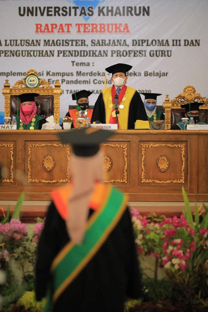 Unkhair.ac.id. Universitas Khairun telah selesai menggelar wisuda secara langsung selama tiga hari berturut turut. Acara wisuda berlangsung dengan protokol kesehatan ketat. Semua peserta wisuda diwajibkan menggunakan masker selama berada dilingkungan kampus, semua petugas tak henti hentinya mengingatkan kepada peserta wisuda untuk selalu mematuhi protokol kesehatan yang berlaku di kampus. Sebelumnya wisuda dimasa pandemi ini pernah dilaksanakan dengan model dalam jaringan (daring). Peserta wisuda adalah lulusan periode Maret dan September tahun 2020 yang sempat tertunda akibat pandemi covid19 seluruh dunia termasuk Maluku Utara. Hari ini Sabtu, 30 Januari wisuda luar jaringan (luring) dilaksanakan di aula Banau kampus I Jalan Bandara Babullah Ternate, ini adalah hari terakhir pelaksanaan wisuda. pelaksanaan wisuda telah berlangsung mulai tanggal, 28 Januari 2021.
