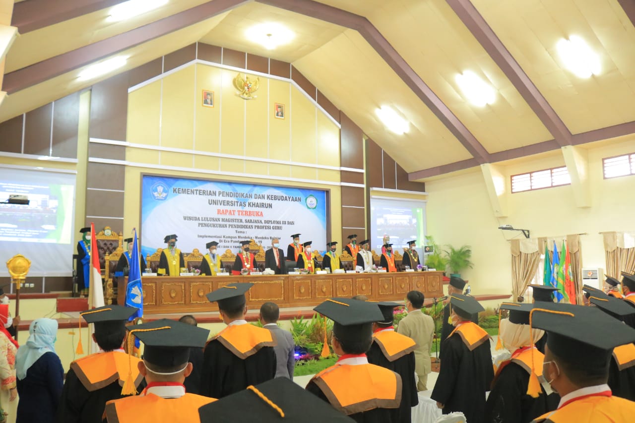Prosesi wisuda Universitas Khairun direncanakan akan digelar secara luring pada tanggal, 27 Maret 2021. Sesuai informasi yang Humas terima melalui Wakil Rektor Bidang Akademik Dr. Suratman Sudjud, SP.MP menjelaskan bahwa calon wisudawan pada yudisium tingkat Universitas berjumlah 1.168 orang yang terdiri dari 1.037 peserta dari Strata Satu, Strata Dua serta Diploma 3. Selanjutnya sebanyak 131 orang dari Pendidikan Profesi Guru.