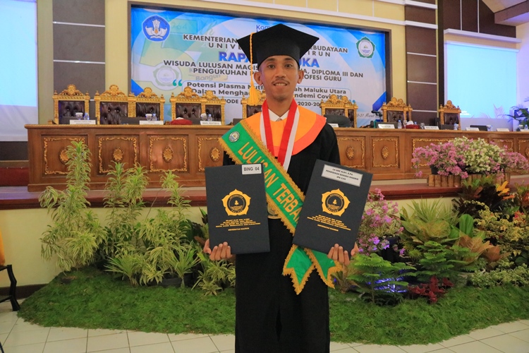 La Ode Aldy tak menyangka mendapat predikat wisudawan terbaik pada acara Wisuda lulusan periode I Tahun Akademik 2020/2021 dengan IPK, 3.91. Semua penghargaan ini dipersembahkan kepada kedua orang tua. (humas)