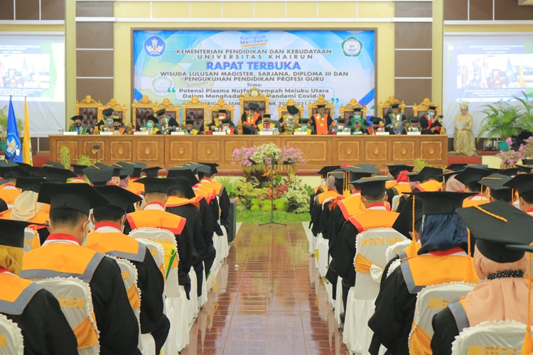 Unkhair. Universitas Khairun resmi menunda pelaksanaan wisuda Periode II Tahun Akademik 2020/2021 yang dijadwalkan pada tanggal, 24 Juli 2021. Penundaan prosesi wisuda dilakukan sebagai upaya pencegahan penyebaran Corona Virus Disease 2019 (Covid-19) di wilayah Kota Ternate. Walaupun pelaksanaan prosesi wisuda ditunda, mahasiswa yang telah dinyatakan lulus atau yang telah diyudisium dapat menerima salinan atau fotocopy ijazah dan transkrip nilai.