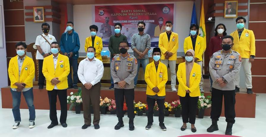 Unkhair. Pandemi Covid-19 belum berakhir, berbagai dampak kini dirasakan oleh masyarakat termasuk orang tua mahasiswa. Pandemic Covid-19 juga mempengaruhi dunia Pendidikan Tinggi. Kegiatan kampus yang dulunya ramai dengan aktivitas mahasiswa kini harus dibatasi. Dengan berbagai dampak pandemic Covid19 yang dihadapi oleh mahasiswa, membuat Kepolisian Daerah Maluku Utara untuk turut membantu dengan memberi sembako untuk meringankan beban ekonomi para mahasiswa.