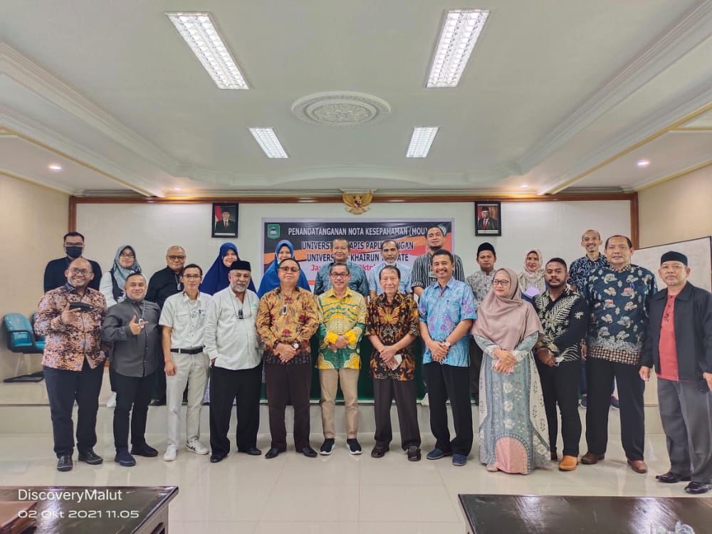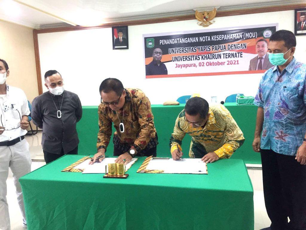 Unkhair. Masih dalam rangkaian kunjungan ke Provinsi Papua, Rektor Universitas Khairun Dr. M.Ridha Ajam, M.Hum melanjutkan kegiatan penandatangan Nota Kesepahaman (MoU) dengan Universitas Yapis Papua (Uniyap) setelah sehari sebelumnya melalukan kegiatan yang sama dengan Universitas Cendrawasih (Sabtu, 02 Oktober 2021). Bertempat di auditorium lantai 7 Kampus Uniyap Jayapura Rektor Universitas Khairun, Dr. M. Ridha Ajam, M. Hum bersama Rektor Universitas Yapis Papua Dr. Muhdi B. Hi. Ibrahim, SE., MM., menandatangani nota kesepahaman (Momerandum of Understanding, MoU).