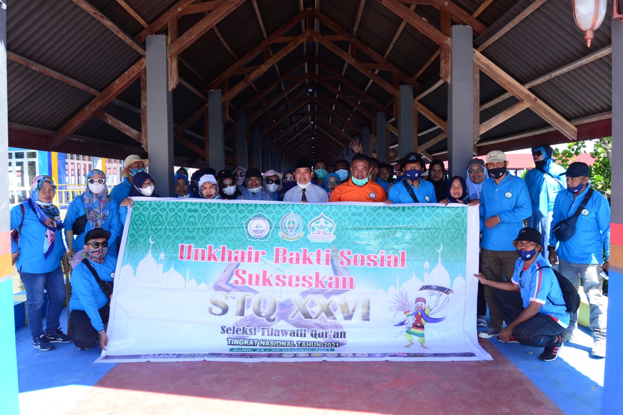 Unkhair. Sivitas Akademika Universitas Khairun turut ambil bagian guna menyukseskan Seleksi Tilawatil Qur’an Tingkat Nasional yang akan berlangsung di Sofifi, Ibu Kota Provinsi Maluku Utara. Sekitar seratus orang dari Universitas Khairun hari ini (Selasa, 12 Oktober 2021) melakukan bersih bersih di Kota Sofifi tempat penyelenggaraan STQ 2021.