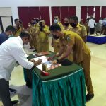 Selanjutnya 115 mahasiswa yang akan mengikuti program pemberdayaan dan pengembangan di 11 Desa Kabupaten Halmahera Barat, James Uang S.Pd. MM menyampaikan selamat dan meminta kepada mahasiswa untuk dapat beradaptasi dengan lingkungan Desa. Kepada para kepala Desa, Bupati meminta agar dapat memperlakukan para mahasiswa dengan baik. (Humas)