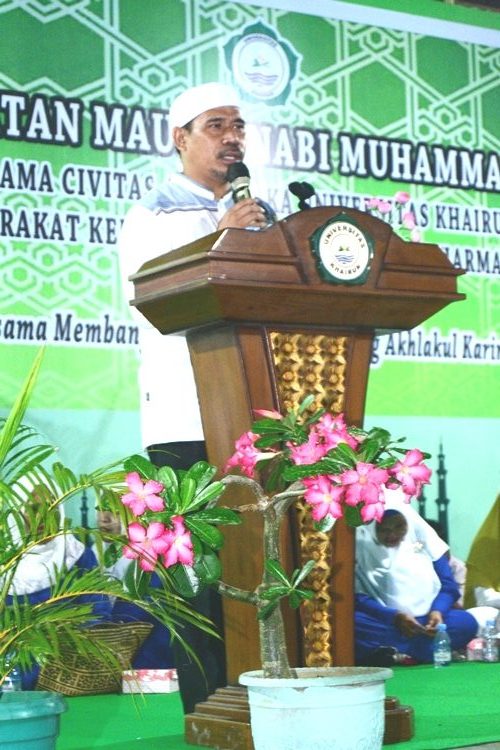 Hikmah Maulid Nabi Besar Muhammad SAW disampaikan oleh H. Mahmud Zulkiram, S.Ag.M.Si, beliau adalah tokoh Adat Keraton Kesultanan Ternate. Dharma Wanita Universitas Khairun bersama Majelis Taklim Kelurahan Gambesi melantunkan sholawat Nabi. Sebelum penyampaian Hikmah Maulid didahului dengan pembacaan ayat suci Al Qur’an.