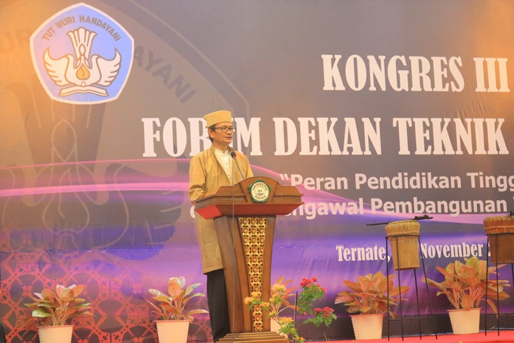 Rektor Universitas Khairun Dr.M.Ridha Ajam,M.Hum dalam sambutannya mengucapkan terima kasih kepada Plt. Dirjen Pendidikan Tinggi, Riset, dan Teknologi Kementerian Pendidikan, Kebudayaan, Riset dan Teknologi Prof. Ir. Nizam, M.Sc., DIC, Ph.D., IPU, Asean Eng yang telah hadir di Ternate pada acara pembukaan kongres ke III Forum Dekan Teknik Indonesia. M.Ridha Ajam mengaku kegiatan kongres tahun ini merupakan kegiatan dengan peserta terbanyak. “Kami sangat bangga dan sangat menghargai kehadiran seluruh peserta yang telah bersedia hadir dalam kongres tersebut,” tuturnya.
