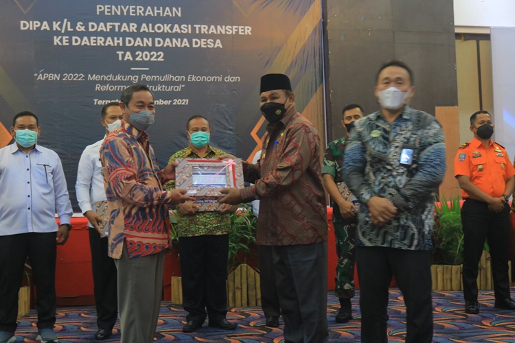 Selain menyerahkan DIPA untuk semua instansi Pemerintah baik Daerah maupun Vertikal, M. Ali Yasin Ali juga menyerahkan Daftar Alokasi Transfer Ke Daerah dan Dana Desa Tahun Anggaran 2022 kepada seluruh Pemerintah Daerah dan Satuan Kerja Kementerian Lembaga yang ada di Provinsi Maluku Utara.