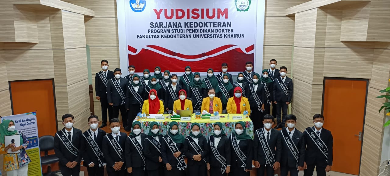 Unkhair.ac.id. Fakultas Kedokteran Universitas Khairun kembali menggelar Yudisum serta sumpah dan janji Dokter Muda. Kegiatan ini berlangsung di aula gedung kuliah bersama Universitas Khairun (Selasa, 15 Februari 2022). Sebanyak tiga puluh dua orang mahasiswa dinyatakan berhak lulus setelah melalui evaluasi dan penilaian panjang.