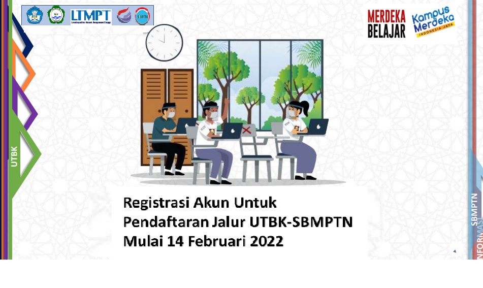 Unkhair. Registrasi akun untuk pendaftaran mahasiswa baru jalur Ujian Tulis Berbasis Komputer (UTBK) untuk Seleksi Bersama Masuk Perguruan Tinggi Negeri (SBMPTN) dimulai hari ini, 14 Februari 2022. Registrasi akun Lembaga Tes Masuk Perguruan Tinggi (LTMPT) dibuka untuk Siswa-Siswi SMA/MA/SMK Sederajat lainnya lulusan angkatan tahun 2020, 2021 serta 2022 yang tidak mendaftar di jalur SNMPTN 2022. Registrasi akun ini wajib dilakukan oleh semua calon pendaftar UTBK-SBMPTN 2022. Pembuatan akun untuk pendaftaran jalur UTBK-SBMPTN akan ditutup pada tanggal, 17 Maret 2022.