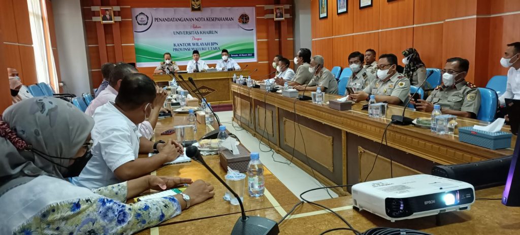 Rektor Universitas Khairun, Dr.M.Ridha Ajam,M.Hum dalam sambutannya mengatakan setelah tertunda beberaa akhirnya kegiatan penendatangan nota kesepakatan antara Unkhair dengan BPN Malut dapat terlaksana. Melalui kerjasama ini kedua belah pihak dapat memanfaatkan secara maksimal peran masing masing terutama Universitas Khairun dengan program implementasi Merdeka Belajar Kampus Merdeka (MBKM).