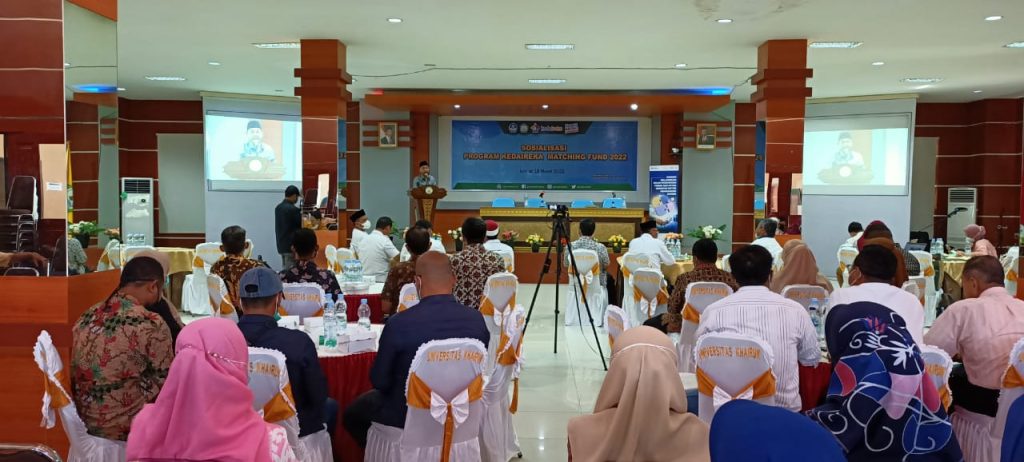 Unkhair. Universitas Khairun melalui Lembaga Penelitian dan Pengabdian Masyarakat (LPPM) bersama Tim Matching Fund Kedaireka 2022 gelar sosialisasi program Kedaireka Matching Fund 2022. Kegiatan ini berlangsung di Aula Nuku lantai 4 Gedung Rektorat Unkhair (Jumat, 18 Maret 2022). Turut hadir dalam sosialisasi program Kedaireka Matching Fund yakni 55 pimpinan dari perusahaan BUMN, Swasta maupun dari UMKM se Kota Ternate beserta Pimpinan Perguruan Tinggi wilayah Maluku Utara.