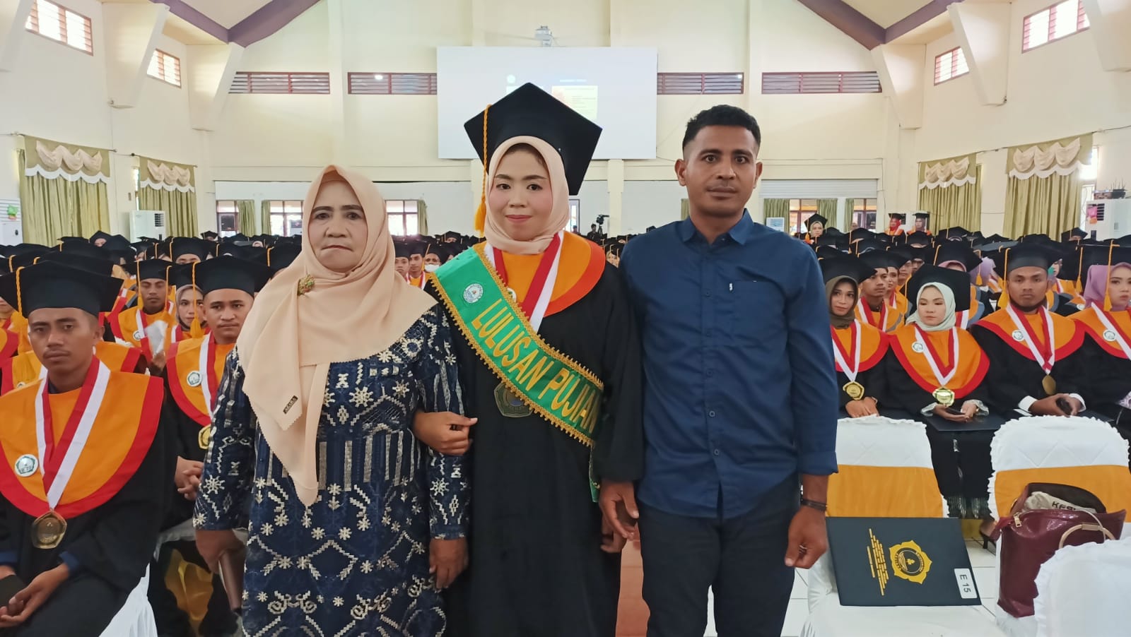 Unkhair. Jahra Kie, Wisudawati dari Fakultas Keguruan dan Ilmu Pendidikan Program Studi Pendidikan Matematika terpilih menjadi wisudawati terbaik dengan predikat pujian pada wisuda periode 3 Tahun Akademik 2021/2022. Kamis 22 Desember 2022.