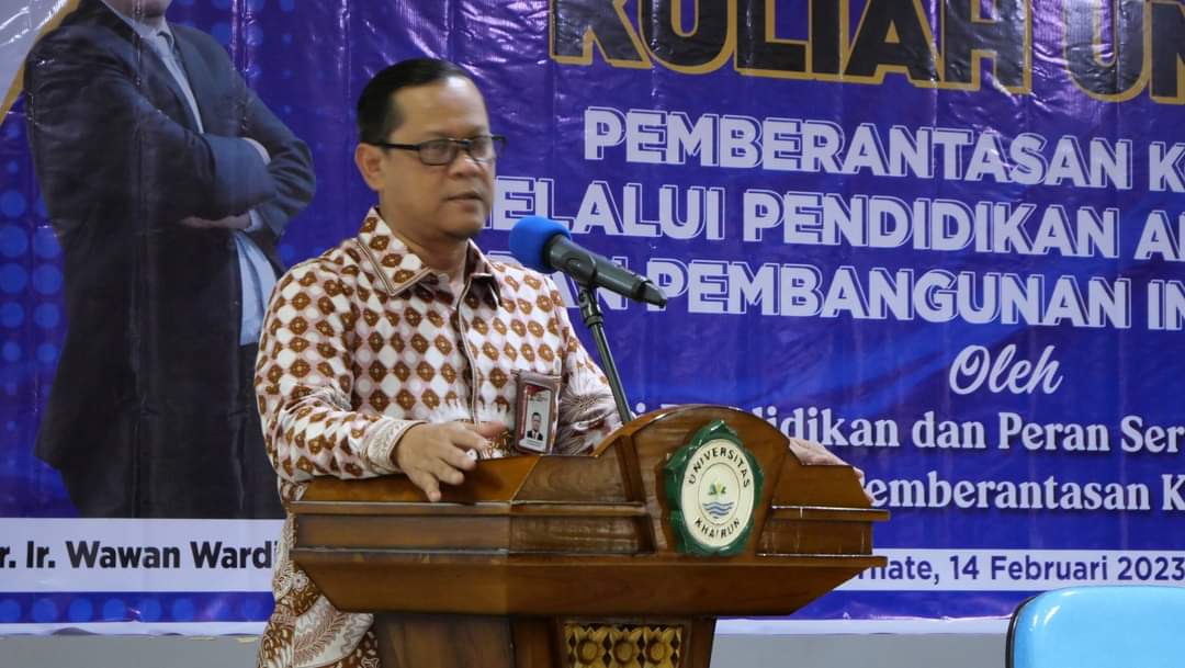 Unkhair. Deputi Pendidikan dan Peran Serta Masyarakat, Komisi Pemberantasan Korupsi Republik Indonesia, Dr. Ir. Wawan Wardiana M.T beri kuliah umum dihadapan ratusan mahasiswa Universitas Khairun, Selasa, 14 Februari 2023. Kuliah umum yang bertemakan “ Pemberantasan Korupsi Melalui Pendidikan Antikorupsi dan Pembangunan Integritas” dihadiri langsung oleh Rektor bersama para pimpinan lainnya.