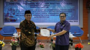 Unkhair. Fakultas Hukum Universitas Khairun gelar Seminar Internasional, seminar internasional tentang Kejahatan Dunia Maya dan Praktek Perlindungan Data Pribadi di Malaysia, India dan Indonesia berlangsung di Aula Nuku gedung Rektorat Universitas Khairun, Selasa, 30 Mei 2023.