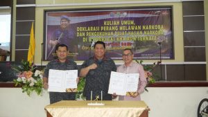 Untuk itu BNN RI melalui BNNP Maluku Utara mengambil langkah konkret dengan dilakukannya berbagai kegiatan di lingkungan kampus Universitas Khairun yakni pendekatan soft power dengan dideklarasikan perang melawan narkoba serta bersama dengan Unkhair untuk berkomitmen menjadikan kampus BERSINAR “Bersih dari Narkoba”.