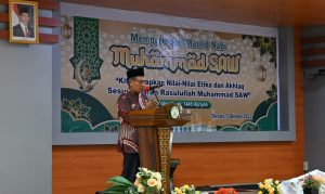 Momentum ini, sambung Warek tak sebatas serimonial belaka, Insya Allah perilaku keteladanan Rasulullah Muhammas SAW, di patrikan ke dalam diri mengikuti jejak Rasululah SAW.