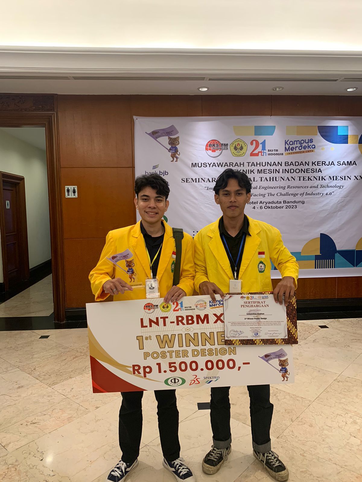 Bersaing ketat 73 Perguruan Tinggi Indonesia di ajang Lomba Nasional Tahunan Rancang Bangun Mesin (LNT-RBM) XII tahun 2023, Adib Marsaf Ilham dan Samsul Prasetio, Tim mahasiswa Program Studi Teknik Mesin Fakultas Teknik Universitas Khairun (Fatek-Unkhair), Ternate akhirnya berhasil meraih juara 1st Winner Poster Design.